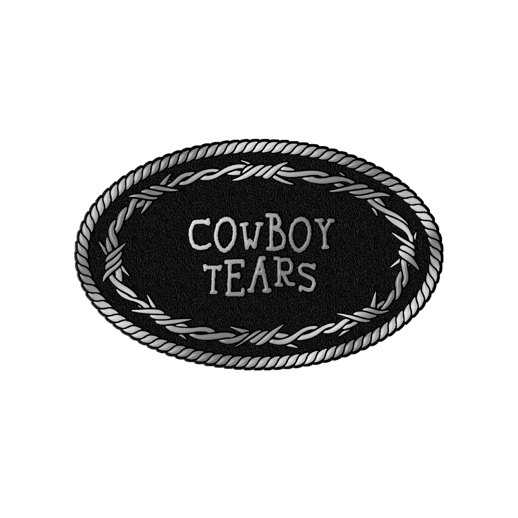 The Oliver Tree ‘Cowboy Tears Belt Buckle’ features ‘Cowboy Tears’ in silver on a custom 3" x 4.39" Die Cast Belt Buckle, 3.5mm thick.Share